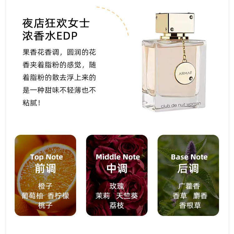 Armaf Nuit Woman阿玛芙夜店女士玫瑰茉莉中东女士淡香水 Club