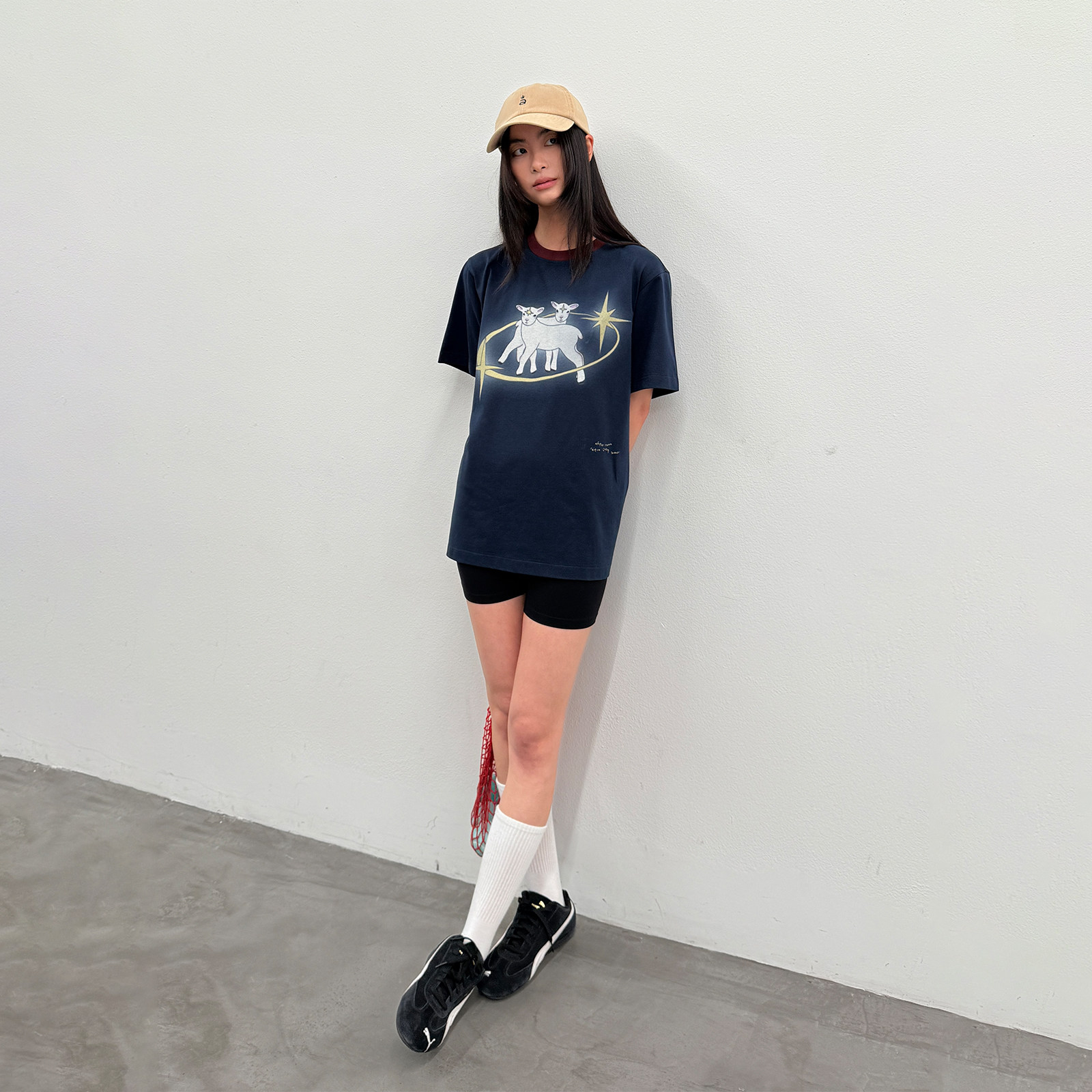 LA短袖 宽松百搭印花上衣白色11 T恤男女情侣落肩袖