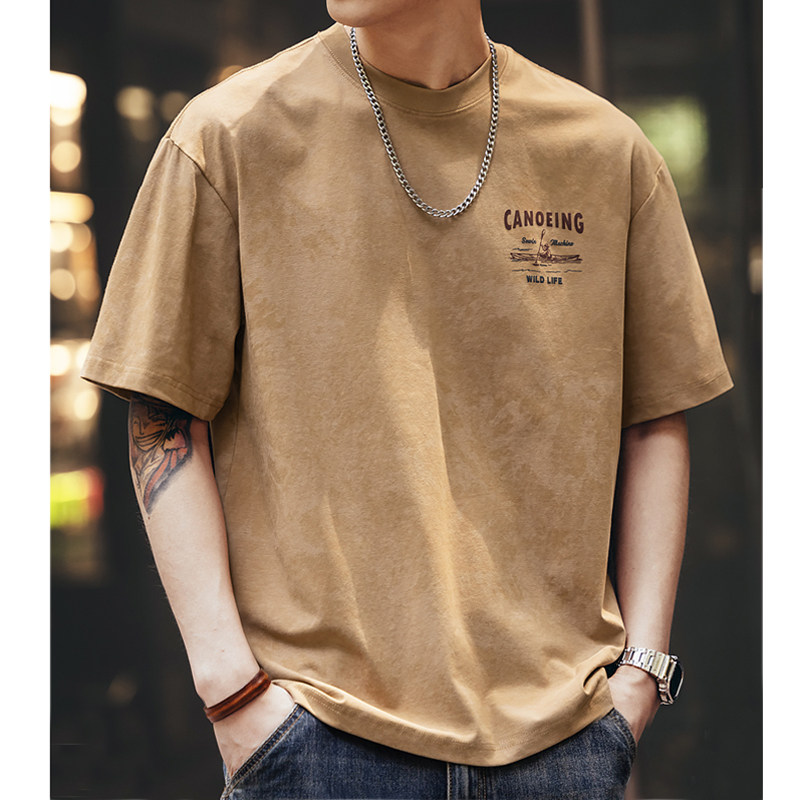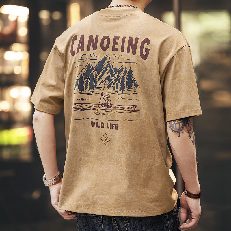 LA短袖 宽松百搭印花上衣白色11 T恤男女情侣落肩袖
