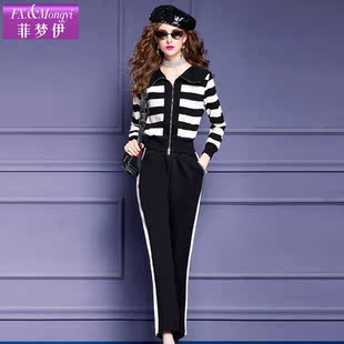 为您提供商品外套运动裤 菲梦伊时尚 两件套 洋气百搭条纹开衫 新款 休闲套装 女春季的详细介绍,