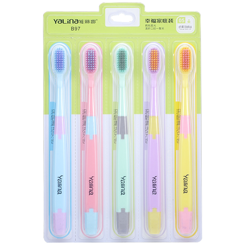 清洁口腔按摩牙龈男女通用情侣手动 5支高档马卡龙软毛牙刷家庭装