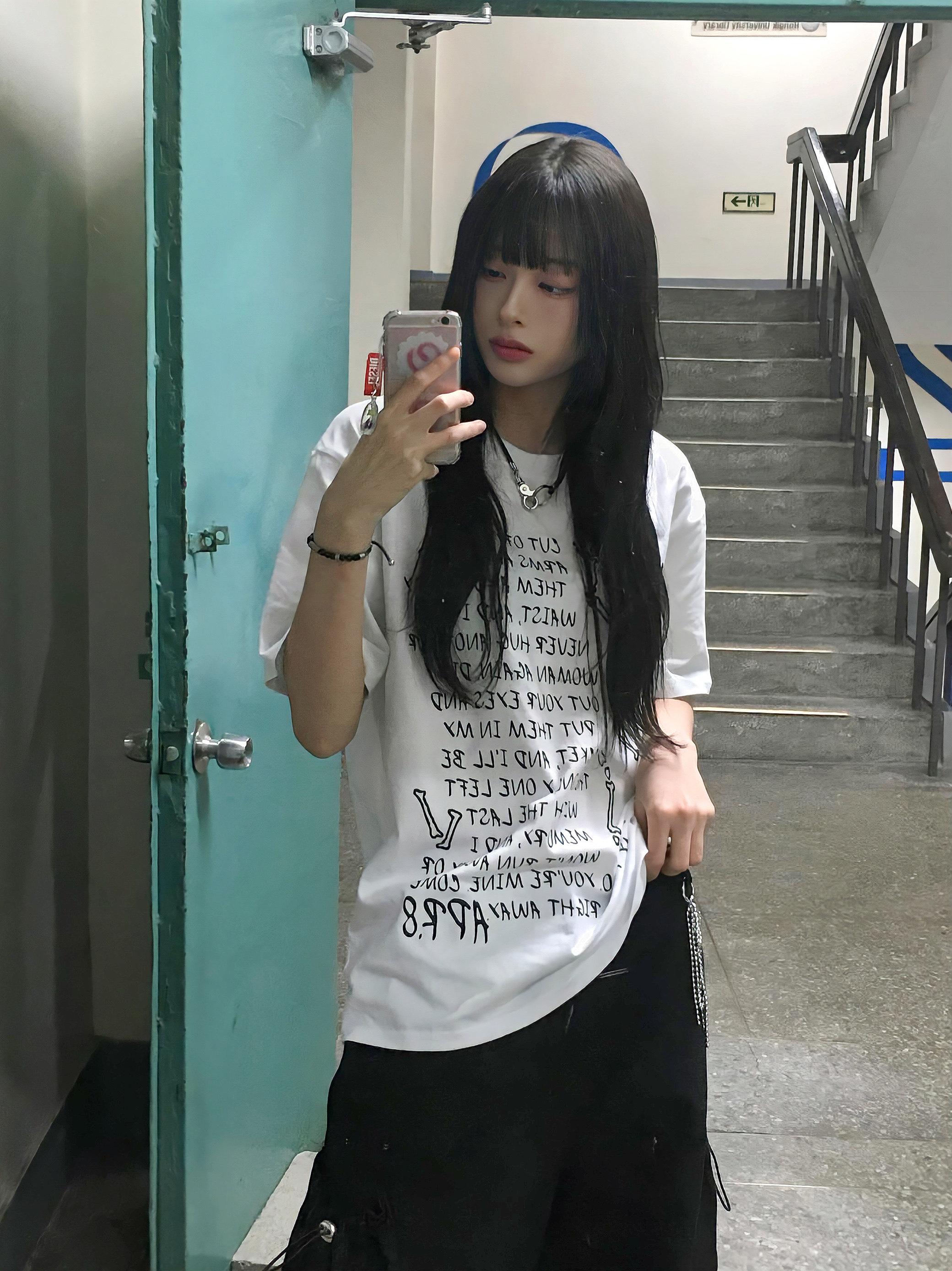 LA短袖 宽松百搭印花上衣白色11 T恤男女情侣落肩袖