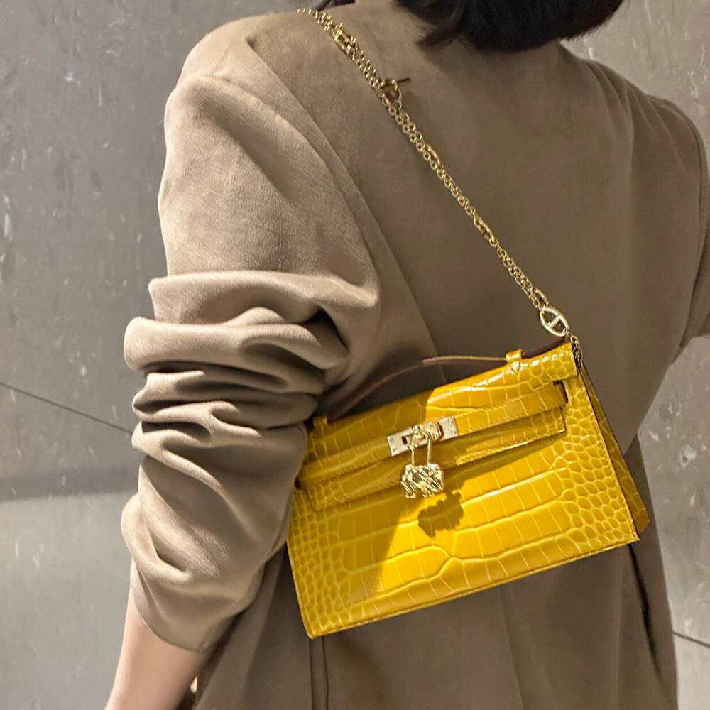 鳄鱼纹包包真皮一代小方包女高级感百搭牛皮手提包单肩斜挎链条包由