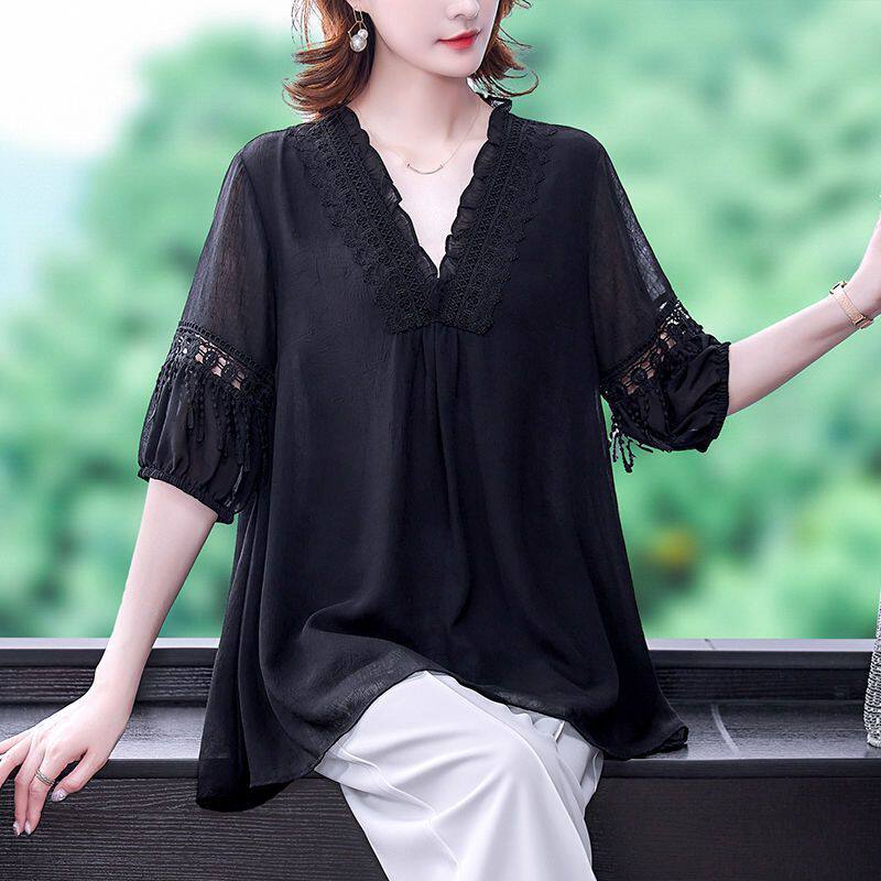 ⭐小红书推荐⭐宽松v领镂空上衣气质女夏装 大码 200斤自制黑色短袖 洋气雪纺衫 女装,所属大码内搭分类,由淘宝网挑选推荐!小红书抖音网红同款!哪里有卖宽松v领镂空上衣气质女夏装 大码 200斤自制黑色短袖 洋气雪纺衫 女装和多少钱质量怎么样✅。