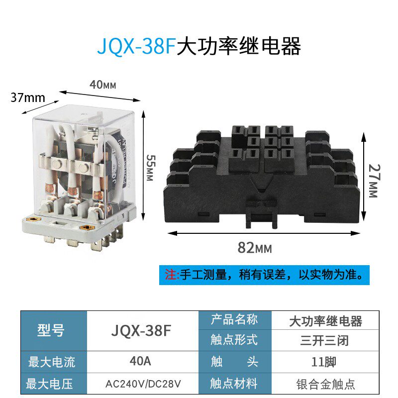 24V AC220V交流11脚 38F大功率继电器40A大电流12伏开关DC12V JQX