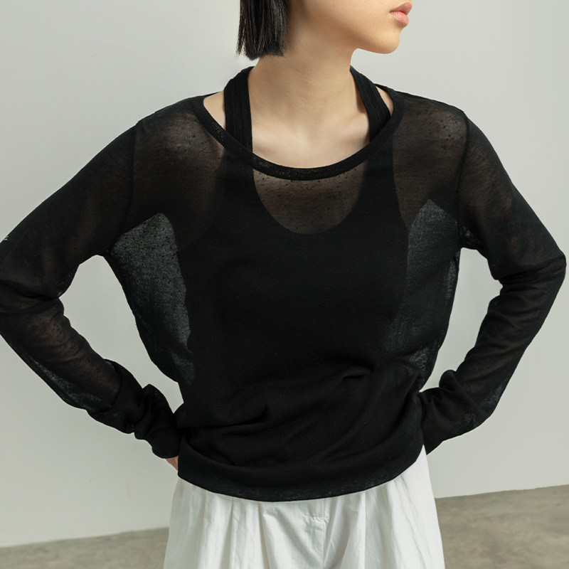 女士2025新款 春秋假两件气质上衣B286 针织衫 322WORKHOUSE黑色薄款