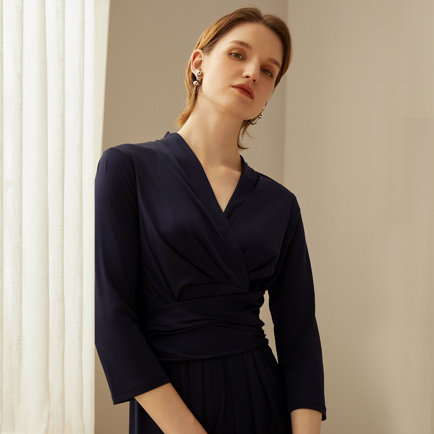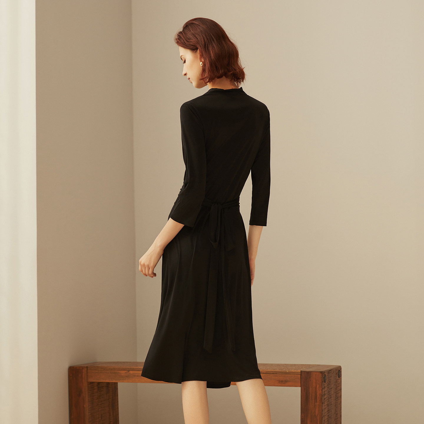 鹿王凉感面膜连衣裙桑蚕丝女士领中袖 针织春夏新款 专柜同款