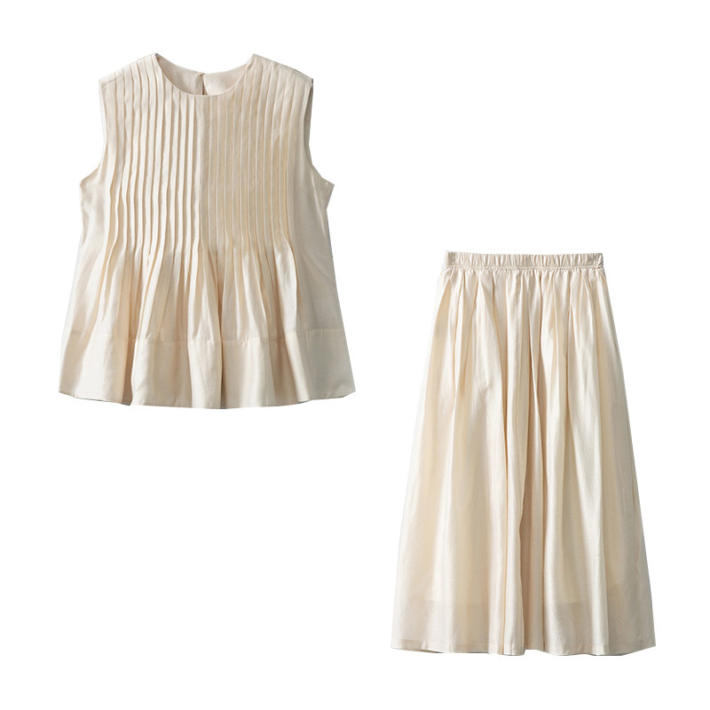 特惠 压褶套装 气质两件套上衣 宽松大摆半身裙2026 高档醋酸时尚