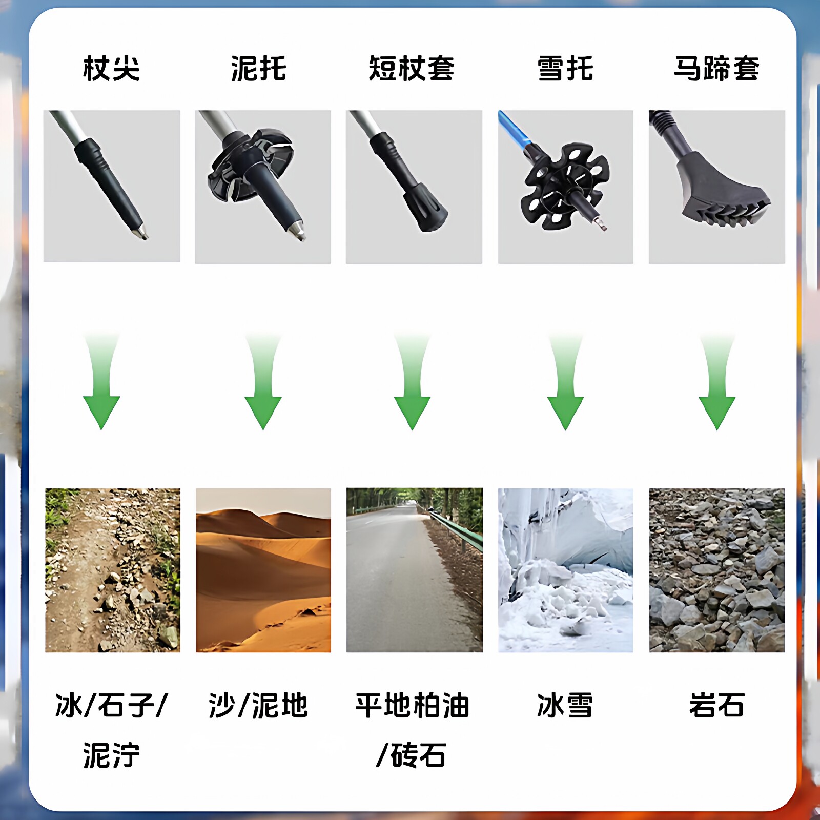 户外徒步 户外登山杖手杖铝合金碳素轻便伸缩折叠爬山拐棍男女款