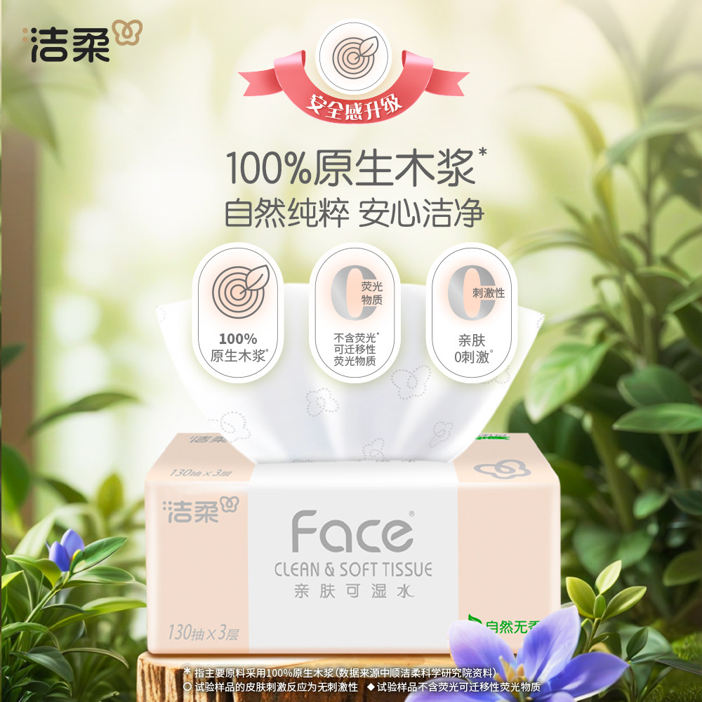 洁柔抽纸face纸巾130抽48包共两箱餐巾纸卫生纸擦手纸家用实惠装由