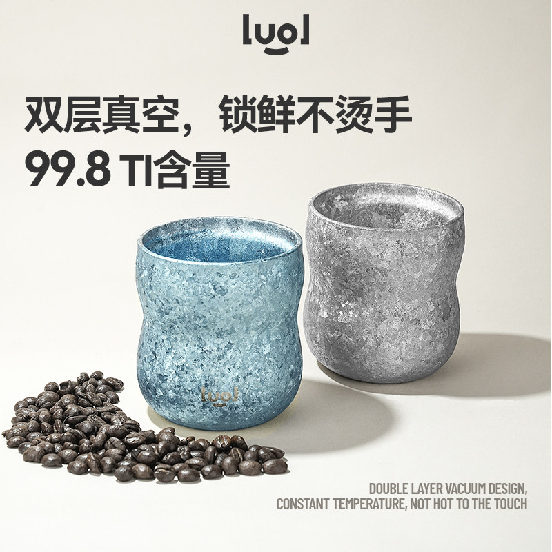 LUOL噜噢花生杯纯钛双层钛杯啤酒杯茶杯便携钛水杯生日礼物送女生