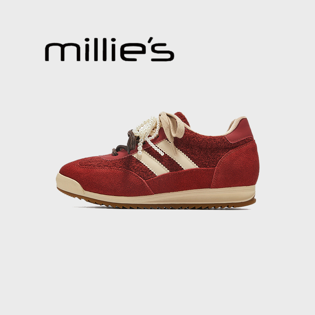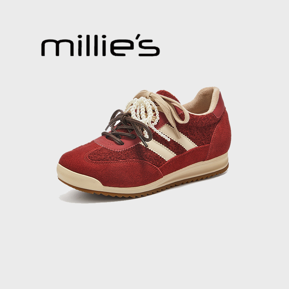 为您提供商品本命年红色毛毛鞋 MILLIE 妙丽增高厚底阿甘鞋 春 休闲百搭德训鞋的详细介绍,
