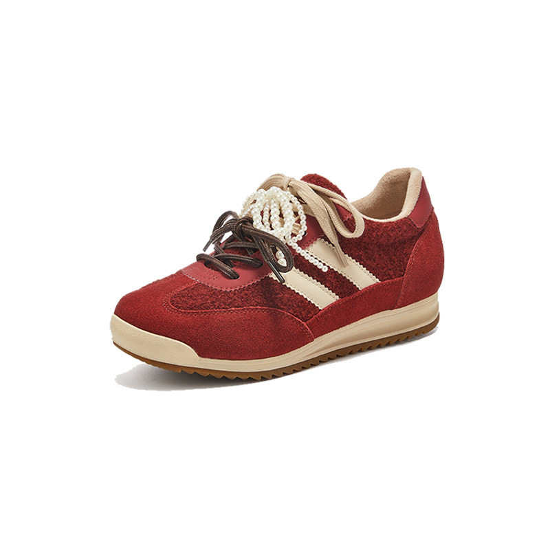 新款 2026年春季 女款 子 休闲鞋 软底新年女鞋 爆款 热风麻薯红色德训鞋