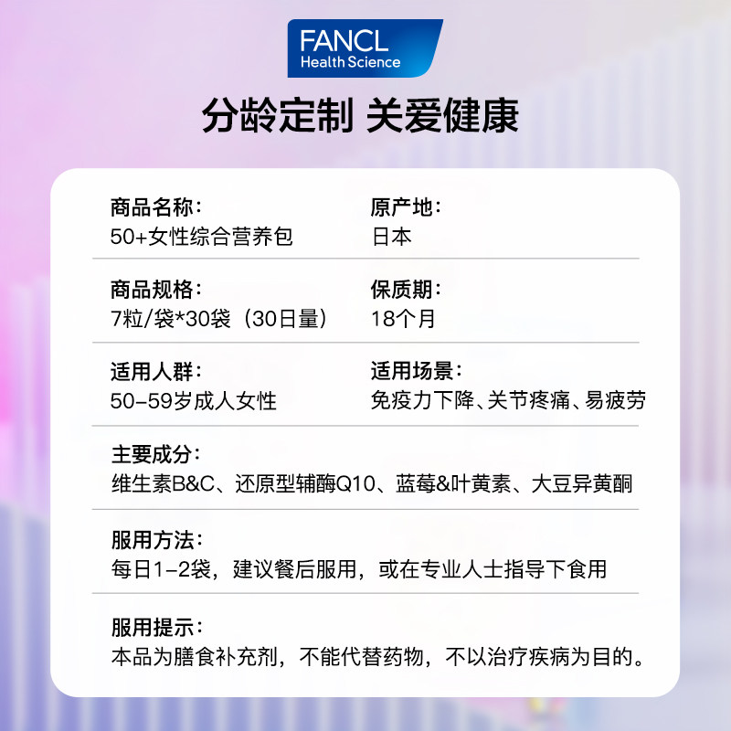为您提供商品日本FANCL芳珂50岁女性综合维生素营养素胶囊30包 袋 自营的详细介绍,