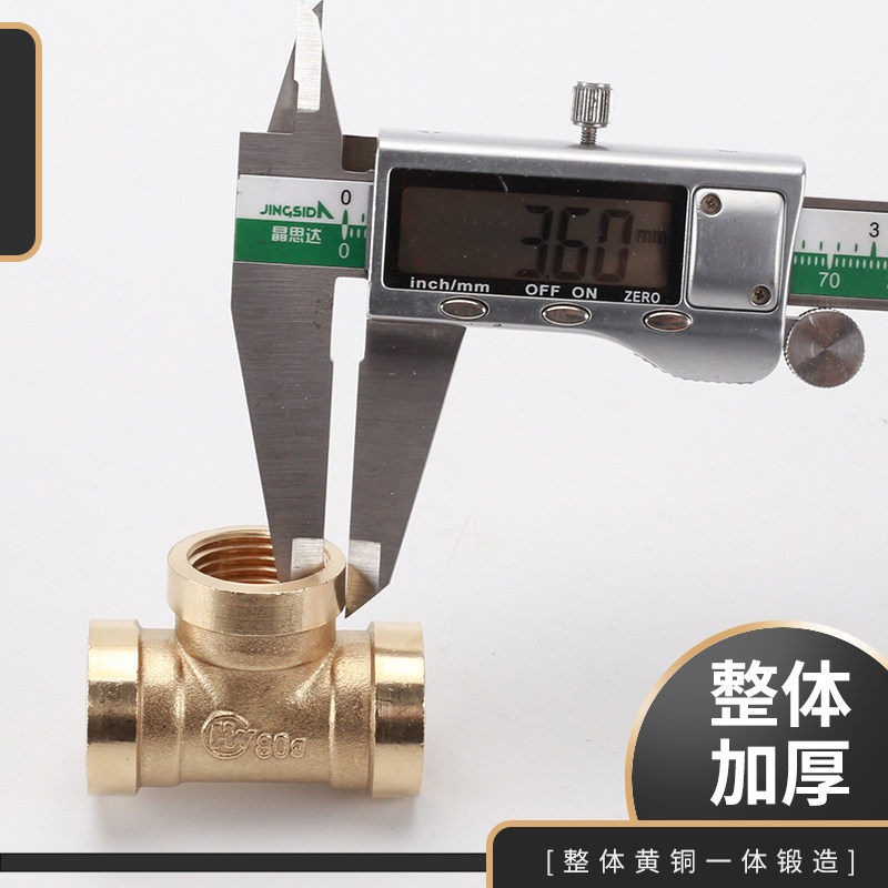 全铜加厚4分三通接头三内丝一内二外三外丝燃气管热水器水管配件