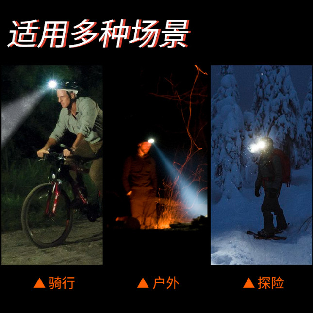夜钓鱼照明户外超长续航超轻感应小手电筒 头灯强光充电超亮头戴式