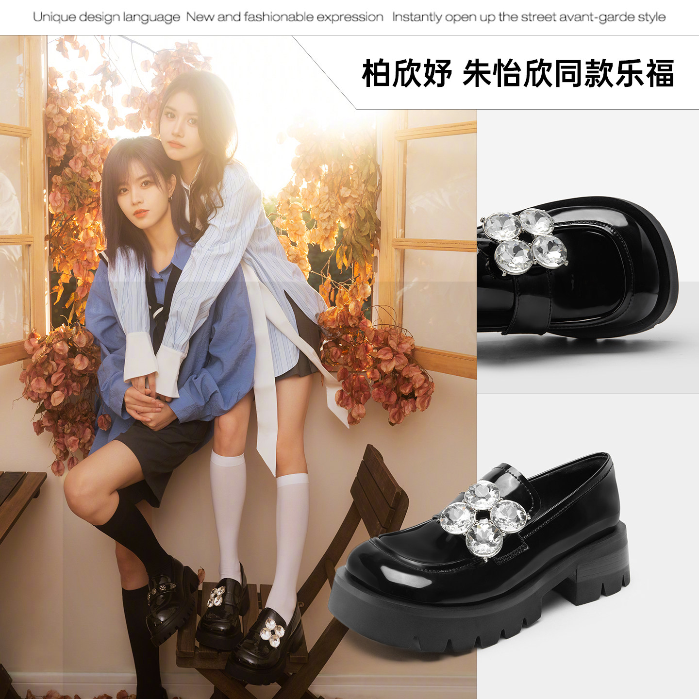 水钻乐福鞋 赵露思许我耀眼同款 mio米奥圆头皮鞋 女鞋 厚底增高单鞋由