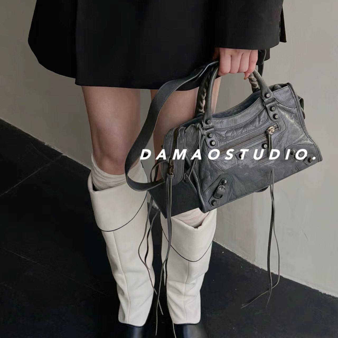 Damaostudio辣妹女包铆钉流苏mini机车皮包单肩斜挎包手提迷你