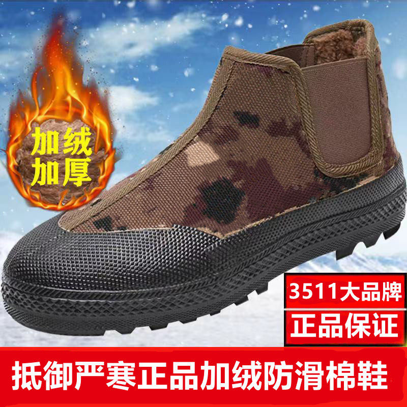 鞋 3511冬季 棉鞋 高帮耐磨迷彩工装 防滑保暖男户外加绒加厚劳保胶鞋