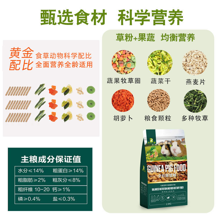 豚鼠粮5斤天竺鼠饲料主粮荷兰猪粮食饲料补充vc鼠粮零食食物用品