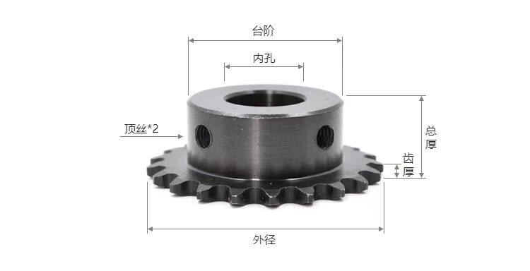 30齿45钢国标工业链轮加键槽顶丝2.3.4.5.6分 5分10A成品孔台轮10