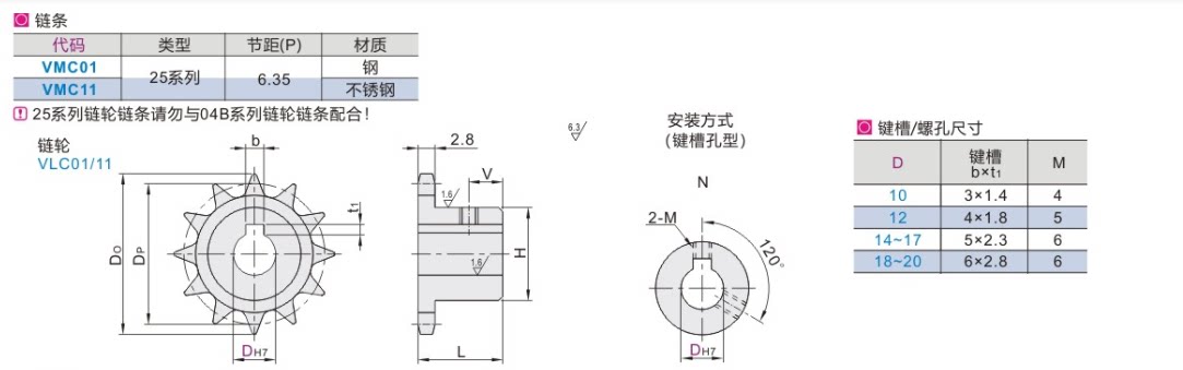 为您提供商品D10怡合达SP25B19 2分19齿链轮链条04C25BVLC01 10米思米的详细介绍,