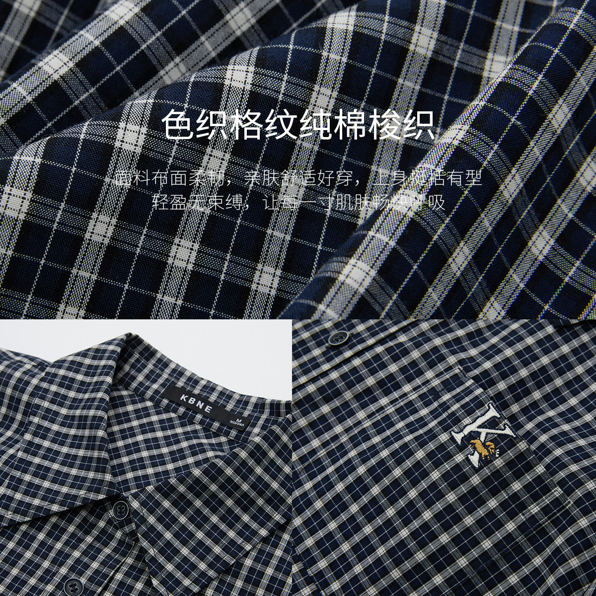 为您提供商品气质衬衣设计感小衫 KBNE藏青格纹梭织衬衫 女2026秋季 新款 上衣 长袖的详细介绍,