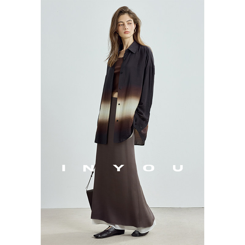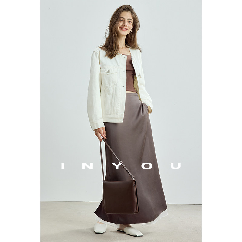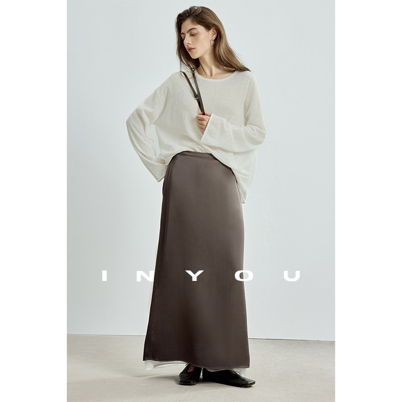 因由 博主风双层撞色后开叉松弛直筒半身裙女 天丝醋酸早初秋新款