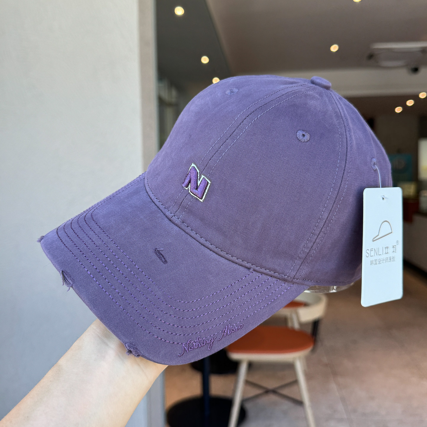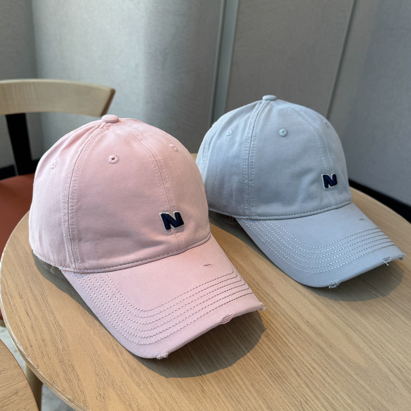 2025森莉秋季 字母N破洞鸭舌帽子男蓝色显白减龄遮阳棒球帽女 新款