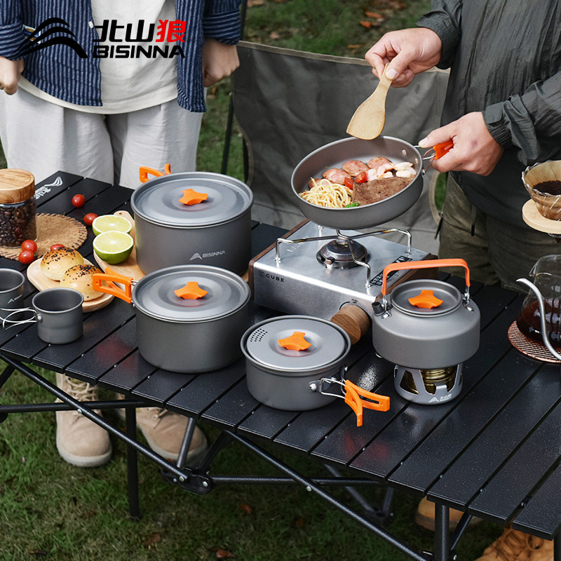 北山狼户外铝合金锅具露营便携烧水壶卡式 炉专用野营套锅炊具套装