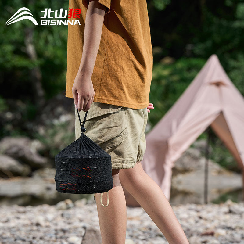 户外套锅网兜收纳袋野营炊具烧水壶旅行束口袋钛杯盘防撞加厚抽绳