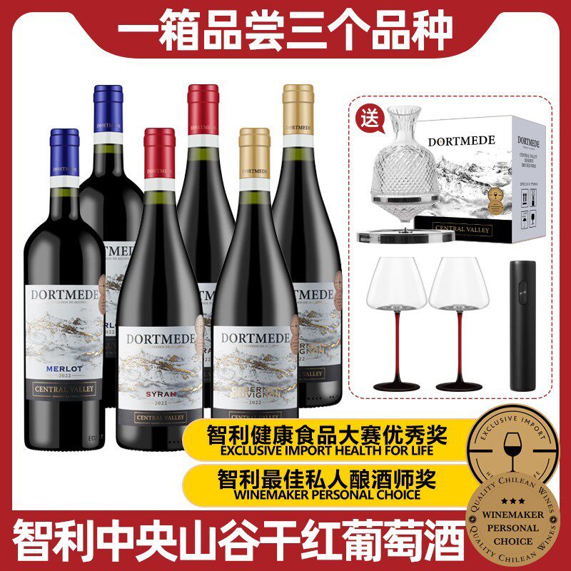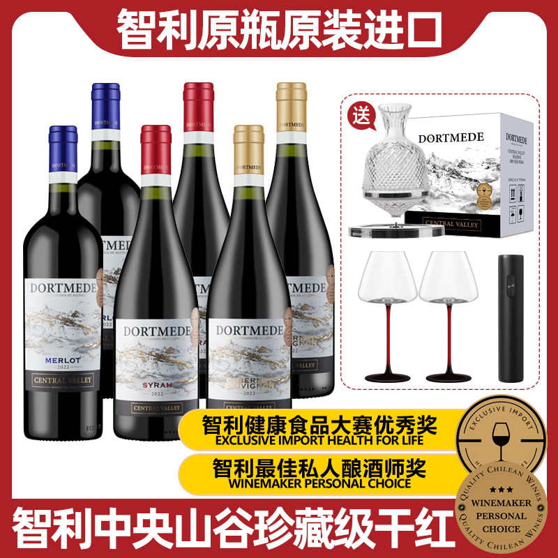 多特梅德中央山谷珍藏级美乐西拉赤霞珠干红葡萄酒组合6支送酒具由