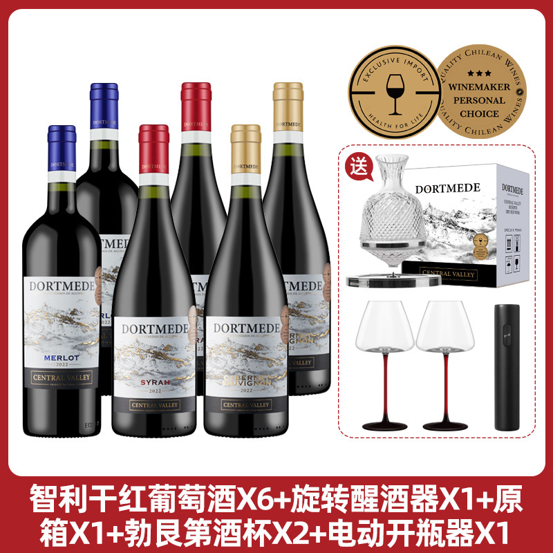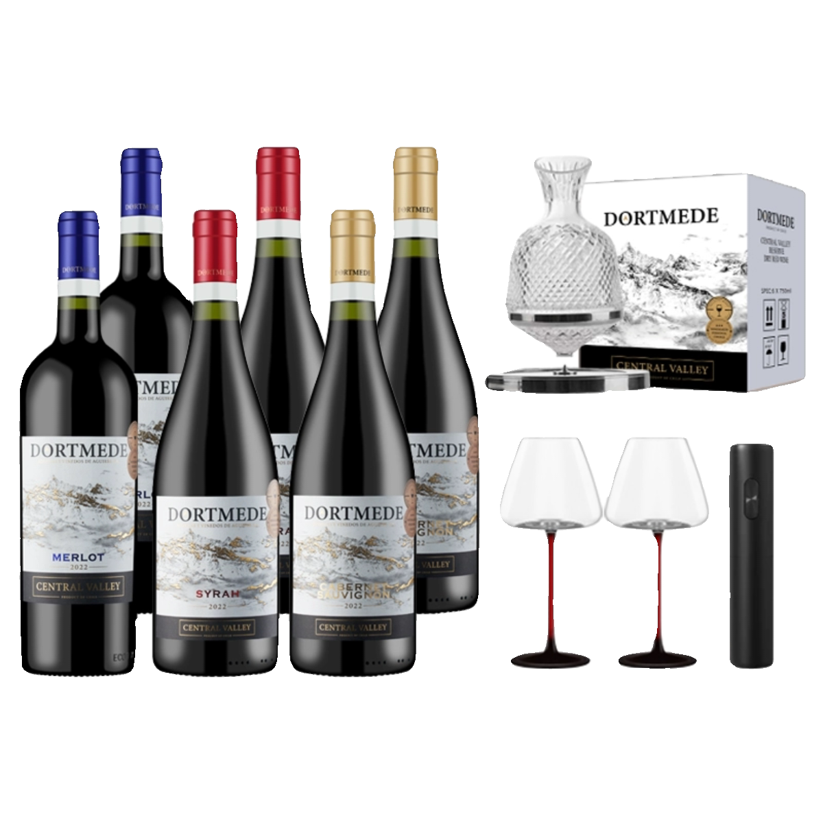 多特梅德中央山谷珍藏级美乐西拉赤霞珠干红葡萄酒组合6支送酒具