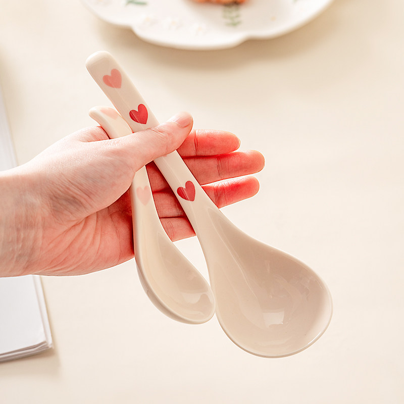 淘宝网为您提供商品onlycook爱心陶瓷汤勺可爱仙女小勺子高颜值汤匙家用长柄喝汤调羹的详细介绍,