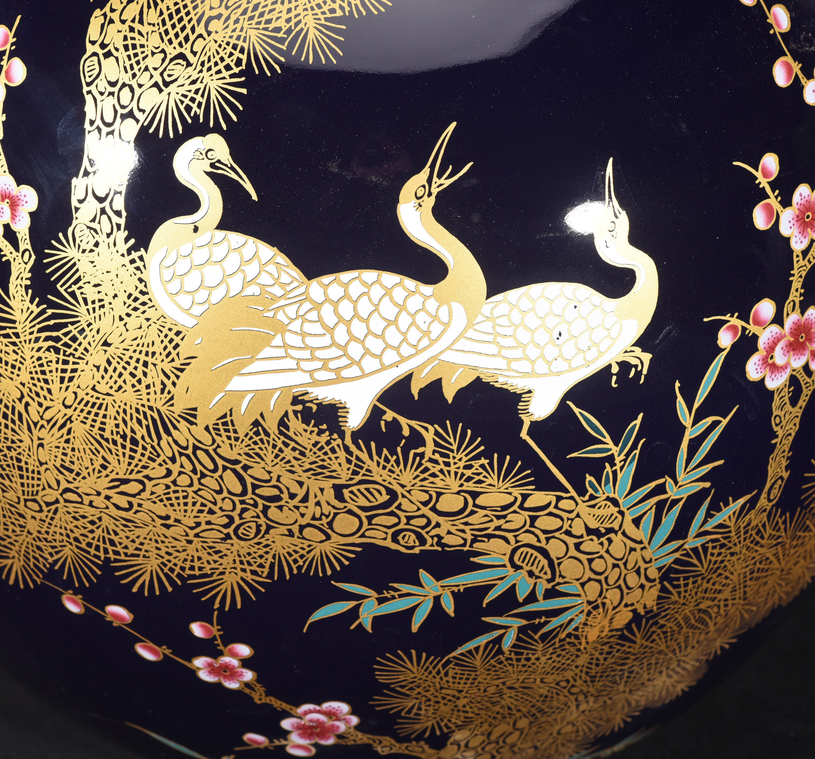 大清乾隆年制霁蓝釉五彩描金六合同春纹天球瓶