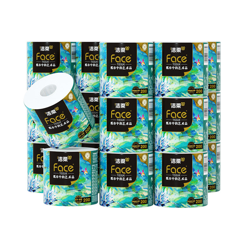 洁柔油画卷纸卷筒纸家用大克重4层无香艺术原生木浆200g20卷纸巾