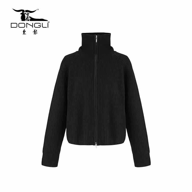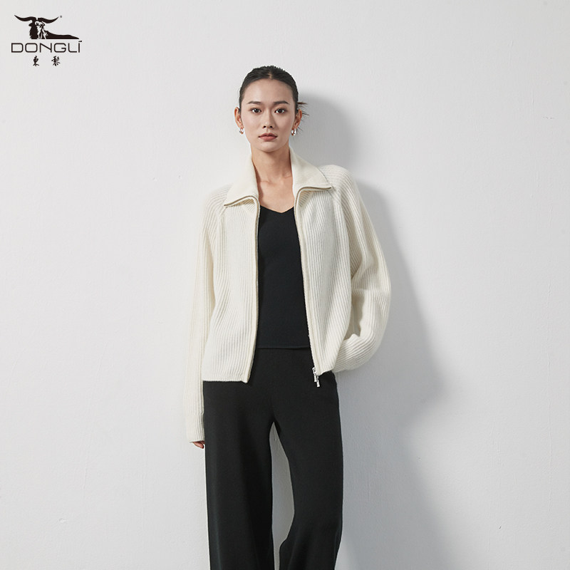 东黎 山羊绒秋冬厚款 翻领拉链抽条针织开衫 毛衣外套女3358 溯源款由