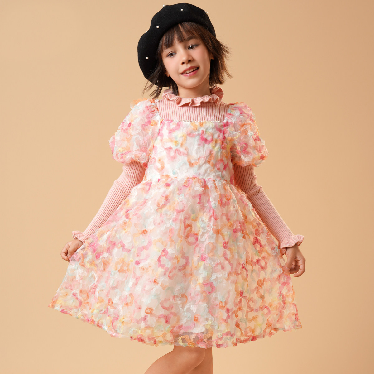 半芭女童连衣裙2026秋冬装 加厚超仙小女孩毛衣公主纱裙两件套 新款由