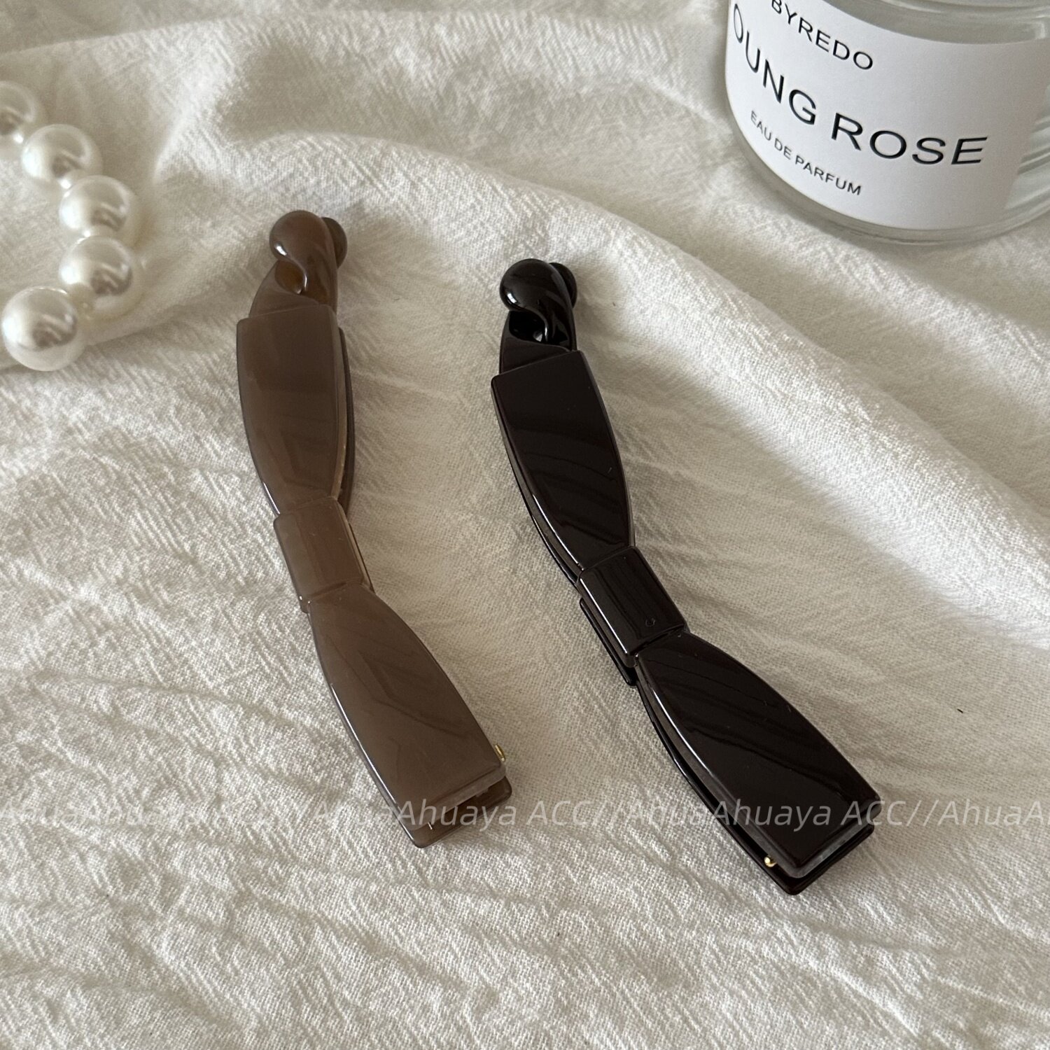 AhuaAhuaya韩版 简约亚克力蝴蝶结香蕉夹气质高级感高马尾发夹 时尚
