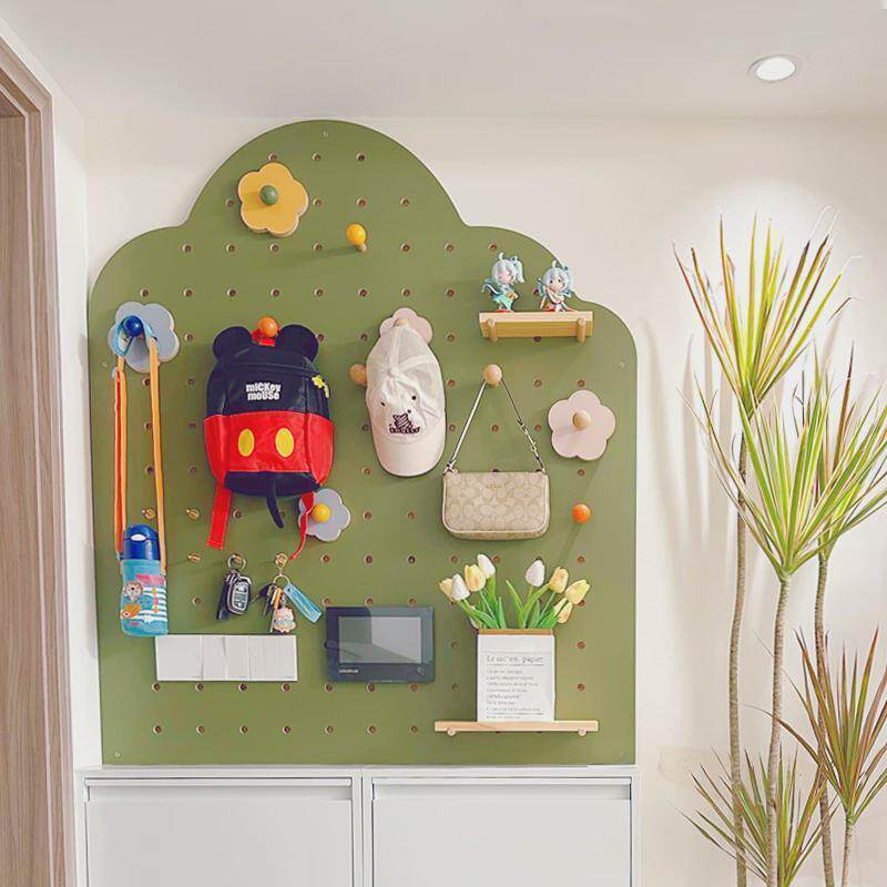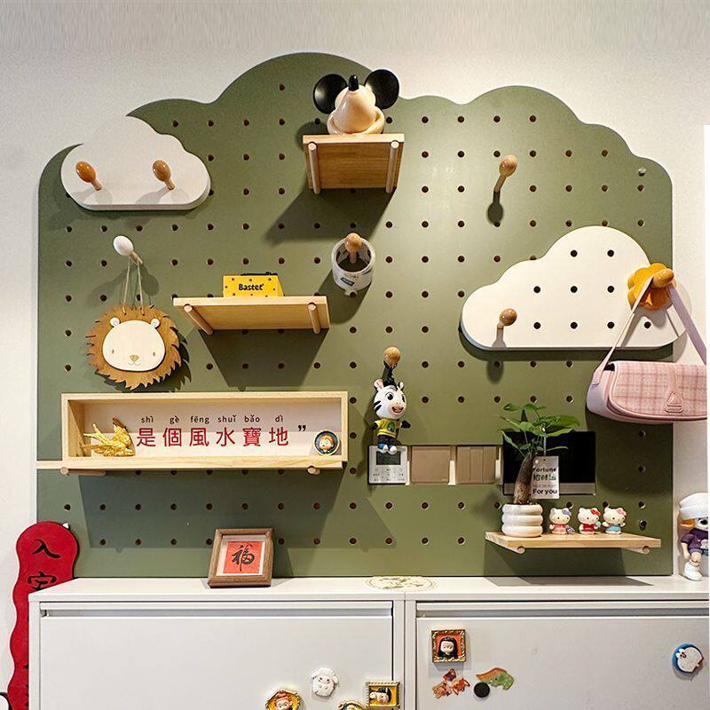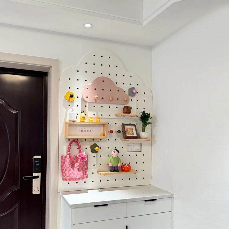 鞋 柜上方置物架隔板墙上家用壁 柜上方空间实木洞洞入户云朵玄关鞋