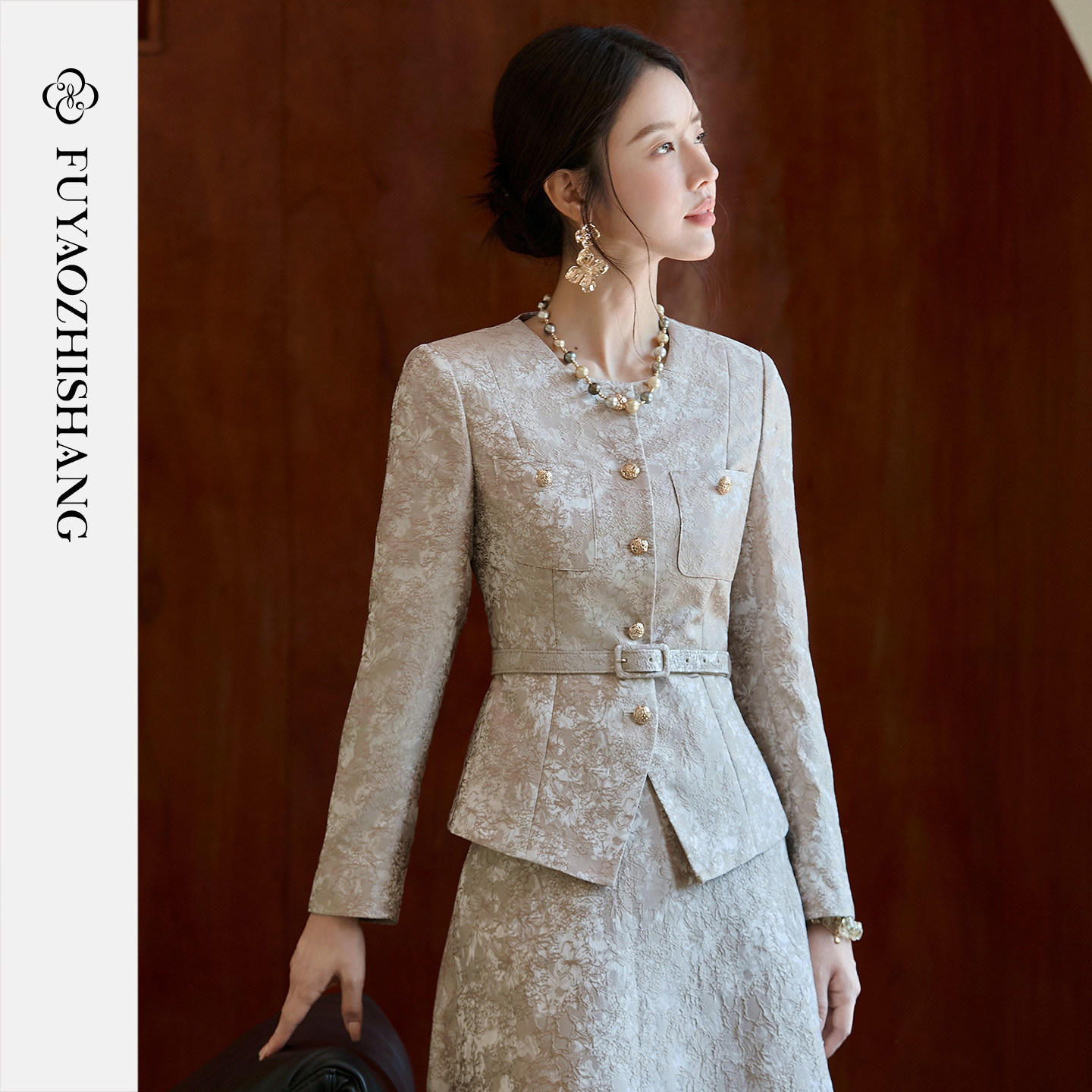 FUYAO扶摇 时尚 套装 女浮雕感轻奢老钱高级感国风穿搭 重工提花春季由