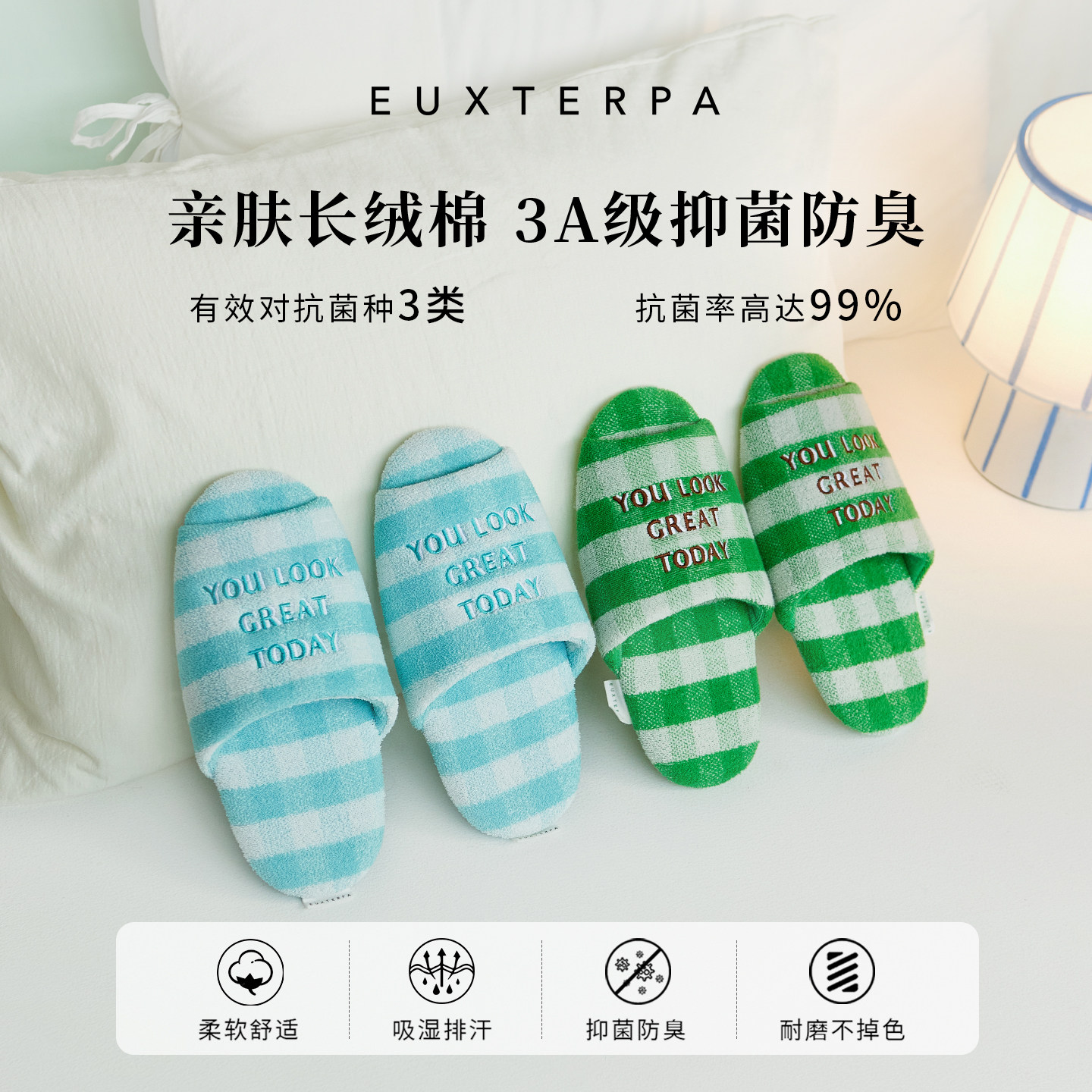 为您提供商品EUXTERPA欧特帕静音防臭棉拖情侣抗菌格纹室内长绒棉防滑居家拖鞋的详细介绍,