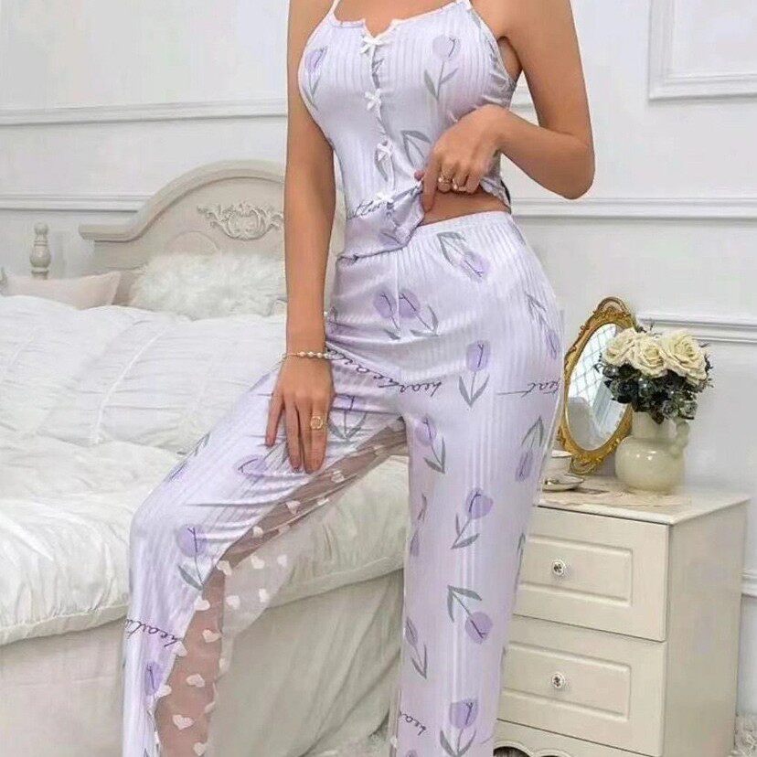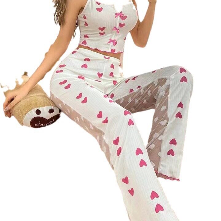 vest set女士家居服 Sexy camisole two piece pants pajama long