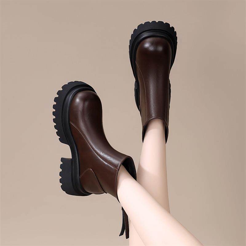 时装 马丁靴骑士机车短靴切尔西粗跟厚底 女靴低跟休闲鞋 戈美其冬季