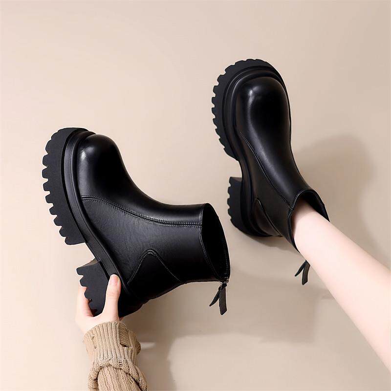 星期六秋冬厚底英伦马丁靴女靴圆头时尚 靴 中跟切尔西短靴复古时装