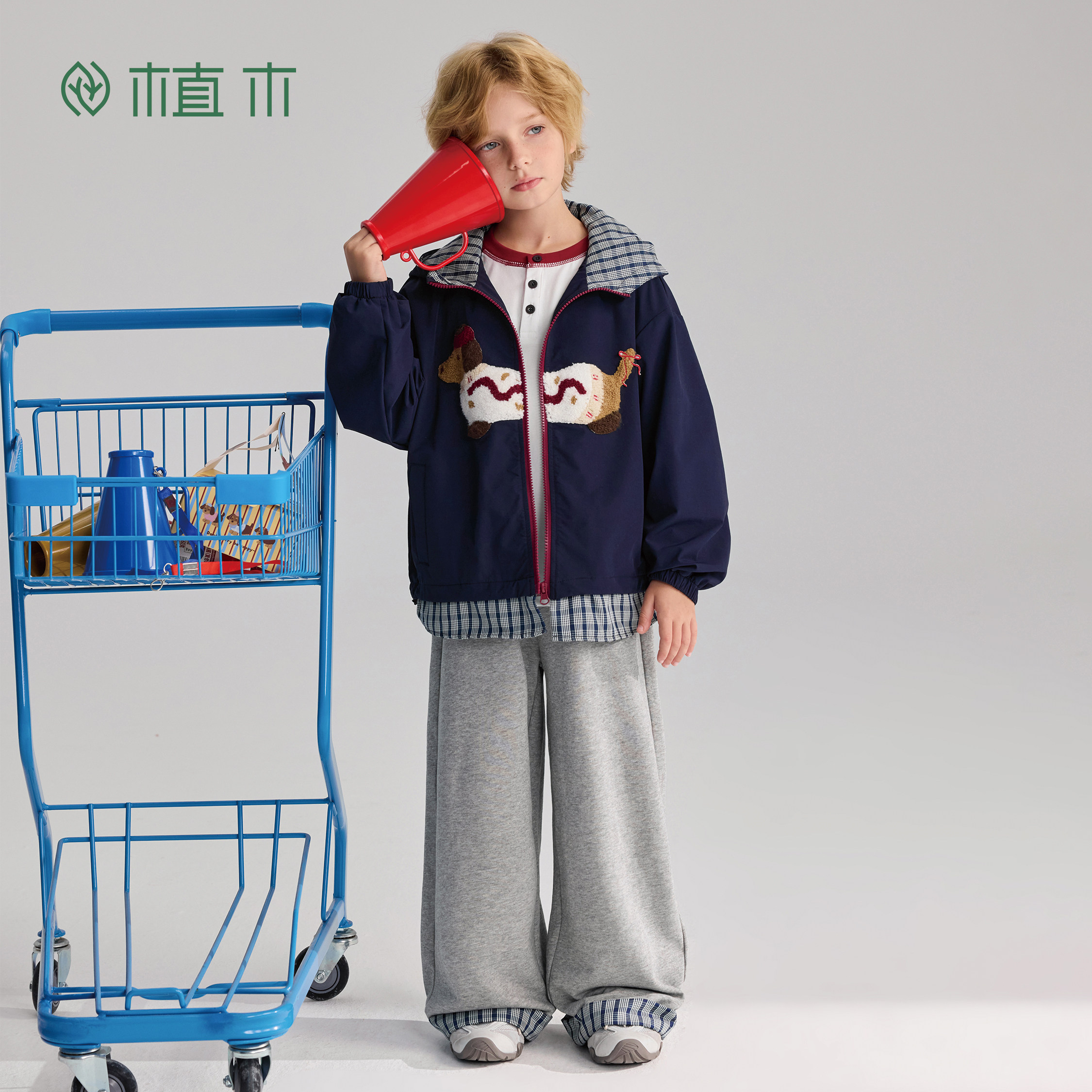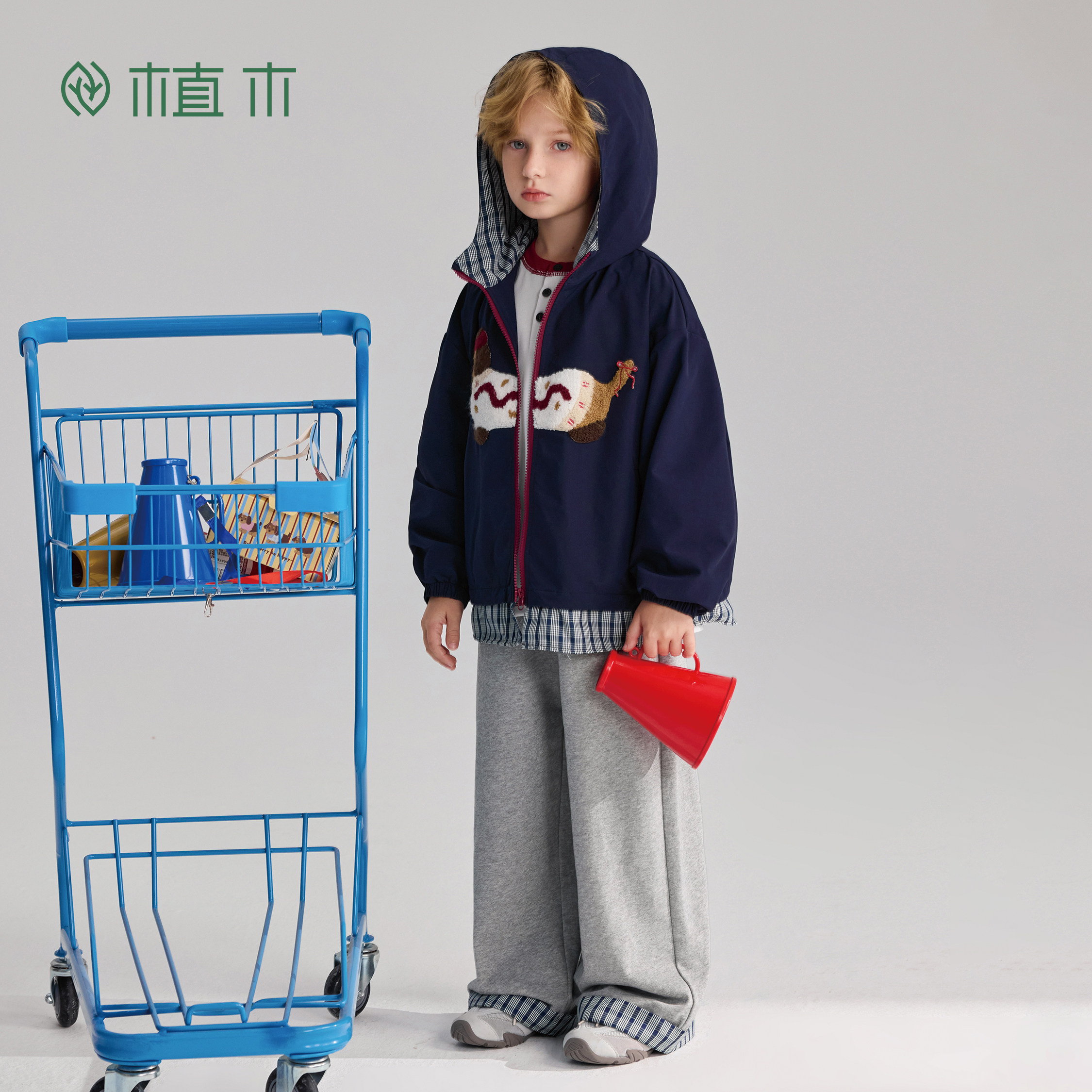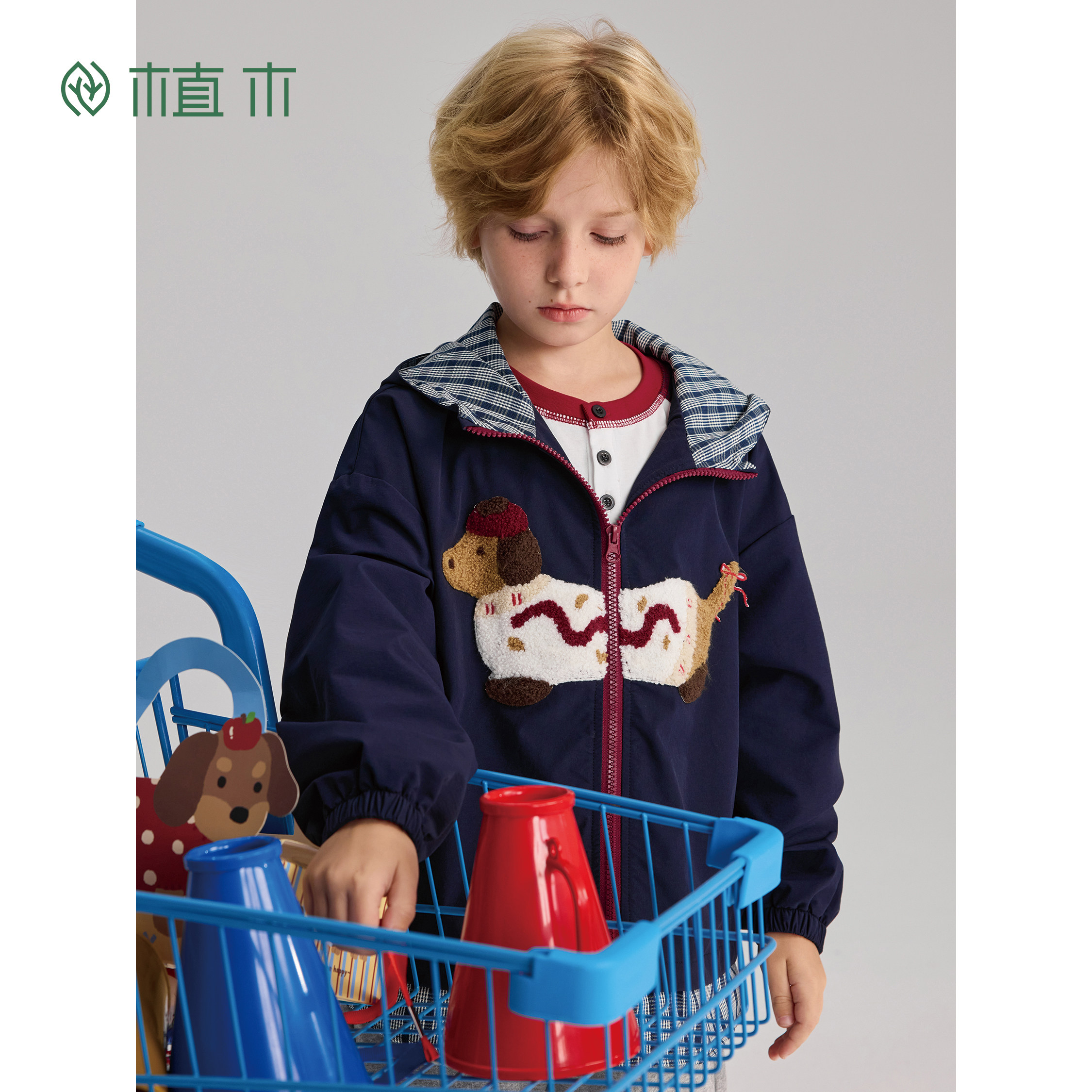 新款 植木 萌宠出街装 腊肠狗拼接男童外套儿童外套2026春季 童装