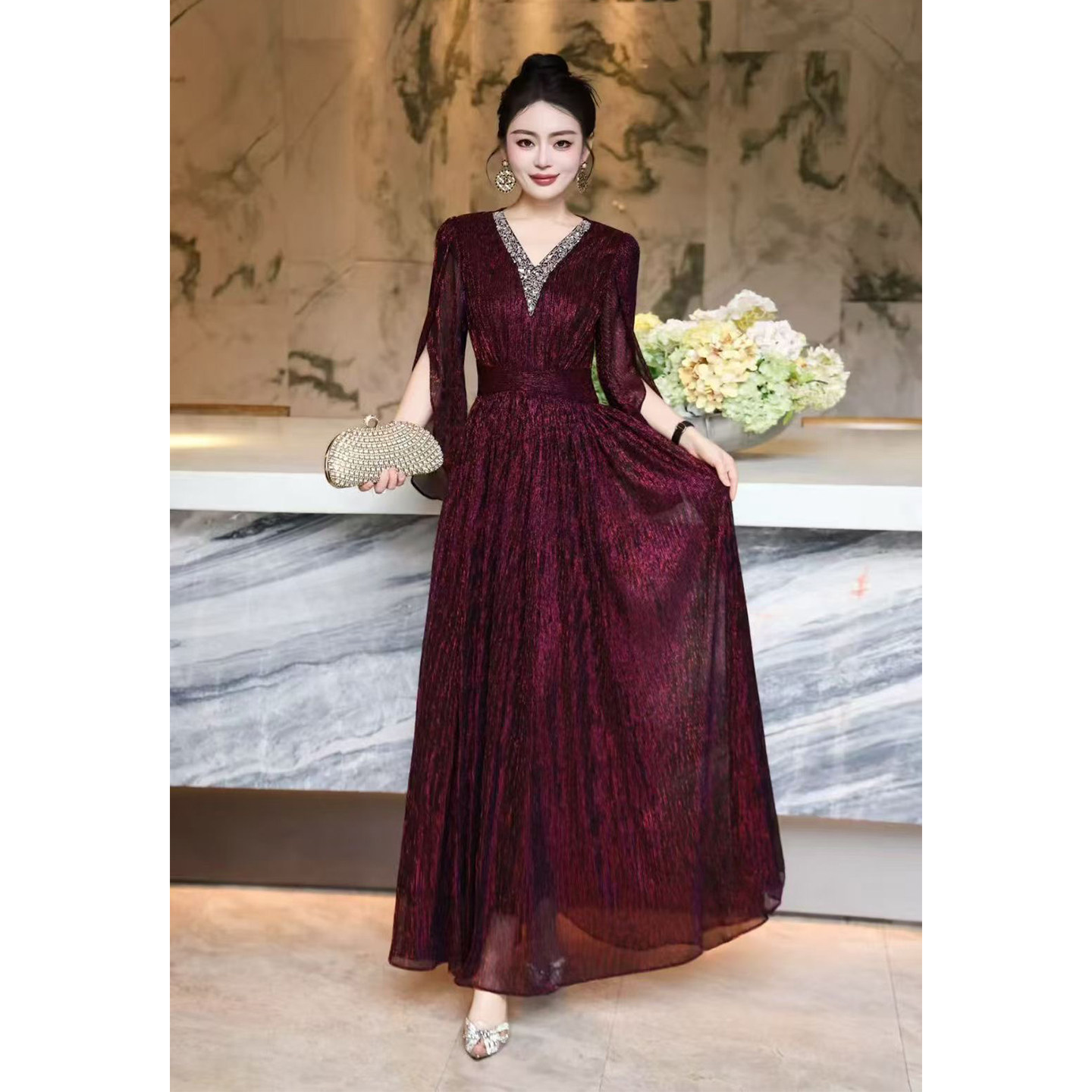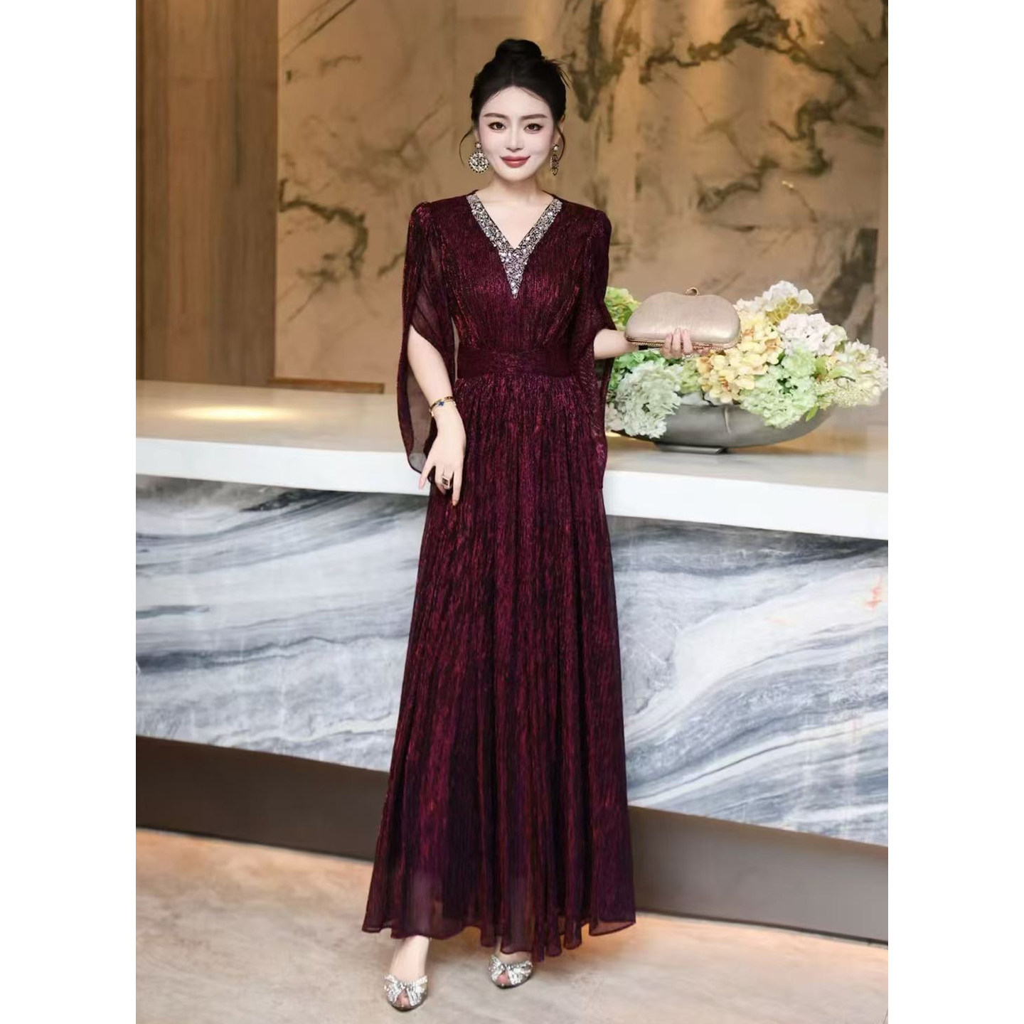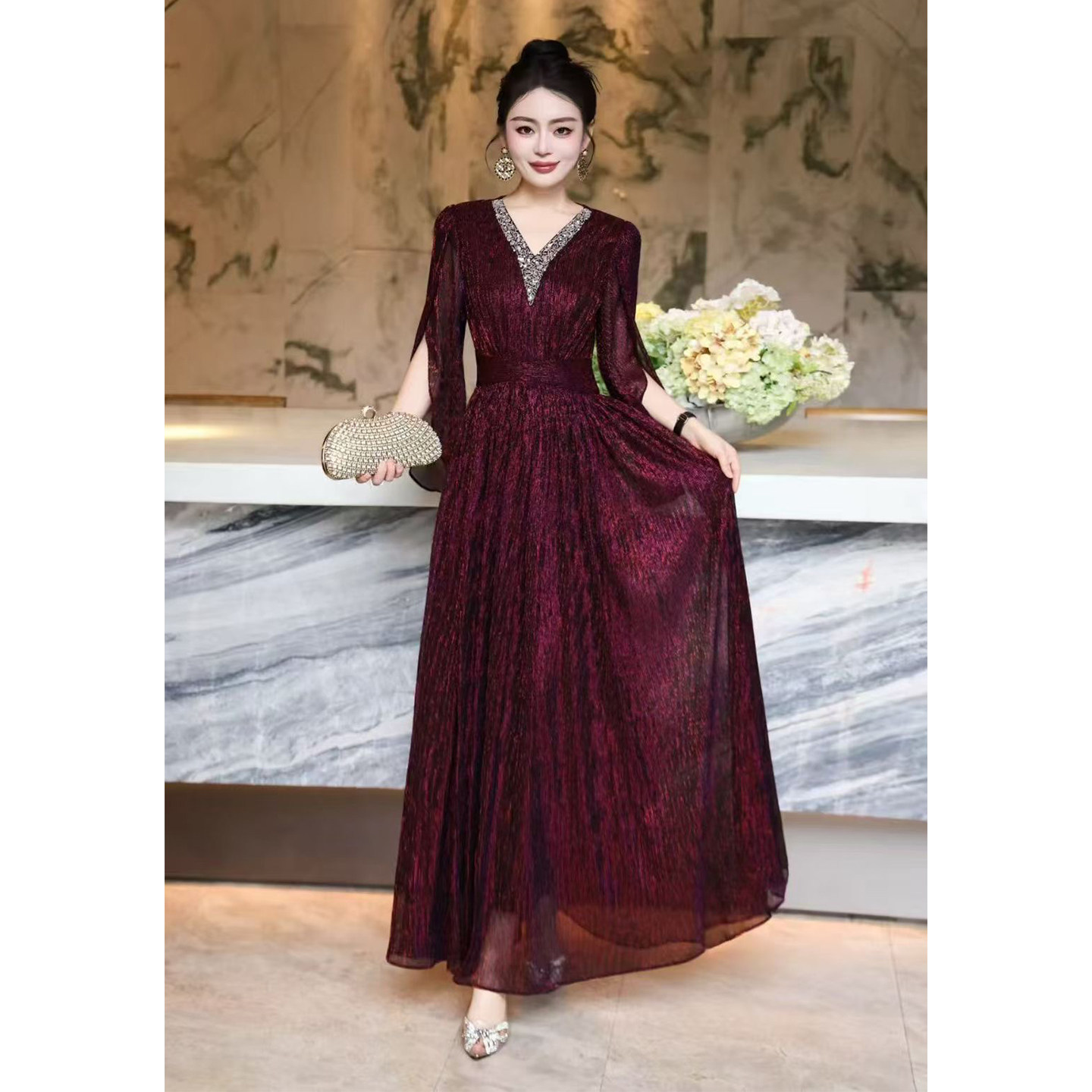 为您提供商品华丽风深V领重工订钻奢华气质礼服连衣裙女神范收腰高端大气晚装的详细介绍,