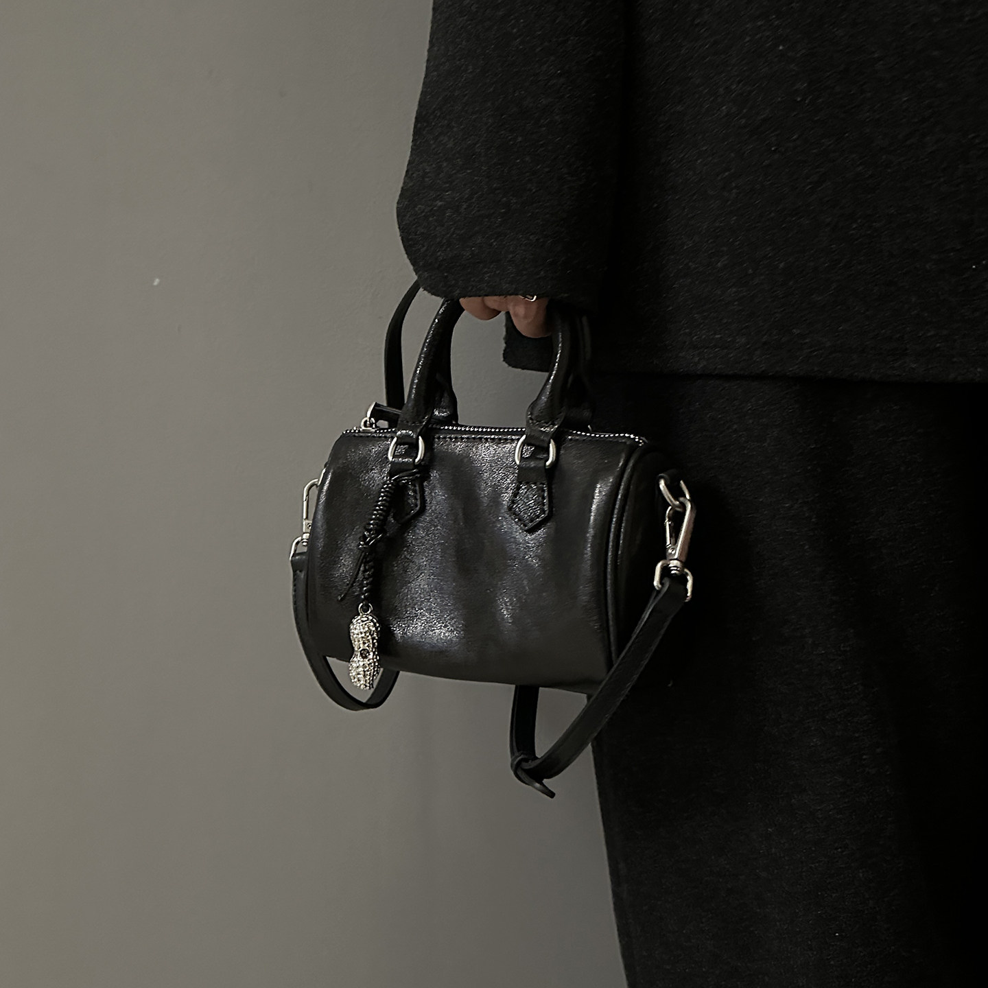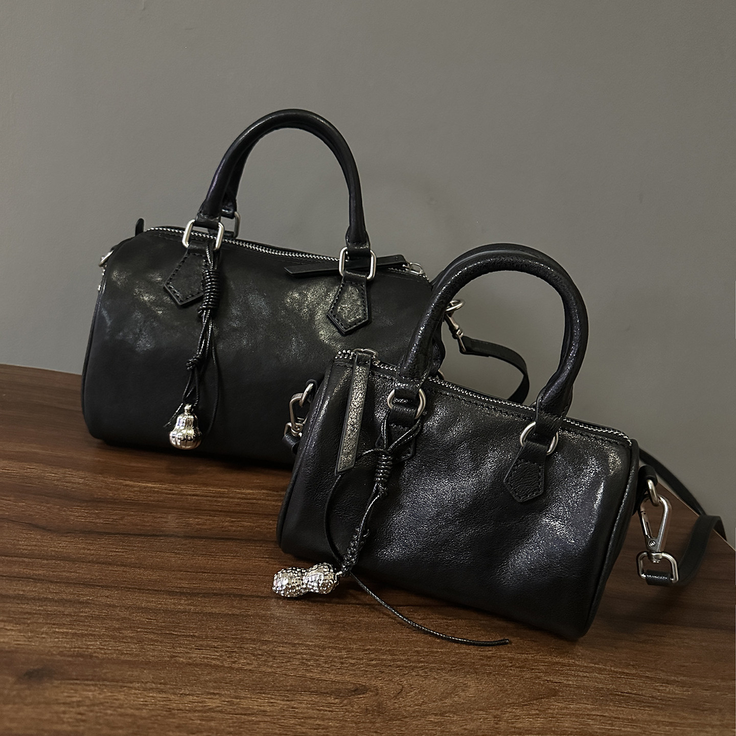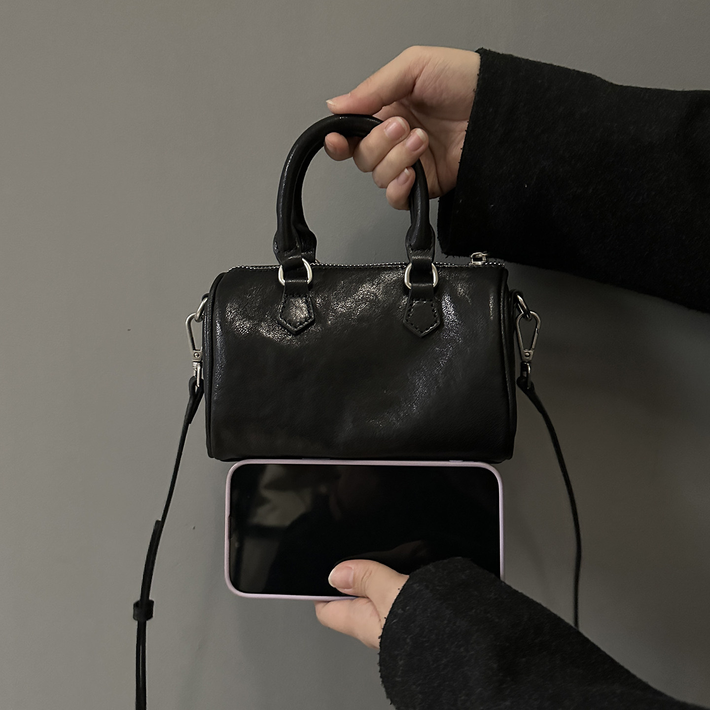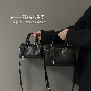 轻奢质感波士顿包真皮小包女包斜挎包 植鞣头层牛皮枕头包轻奢法式由