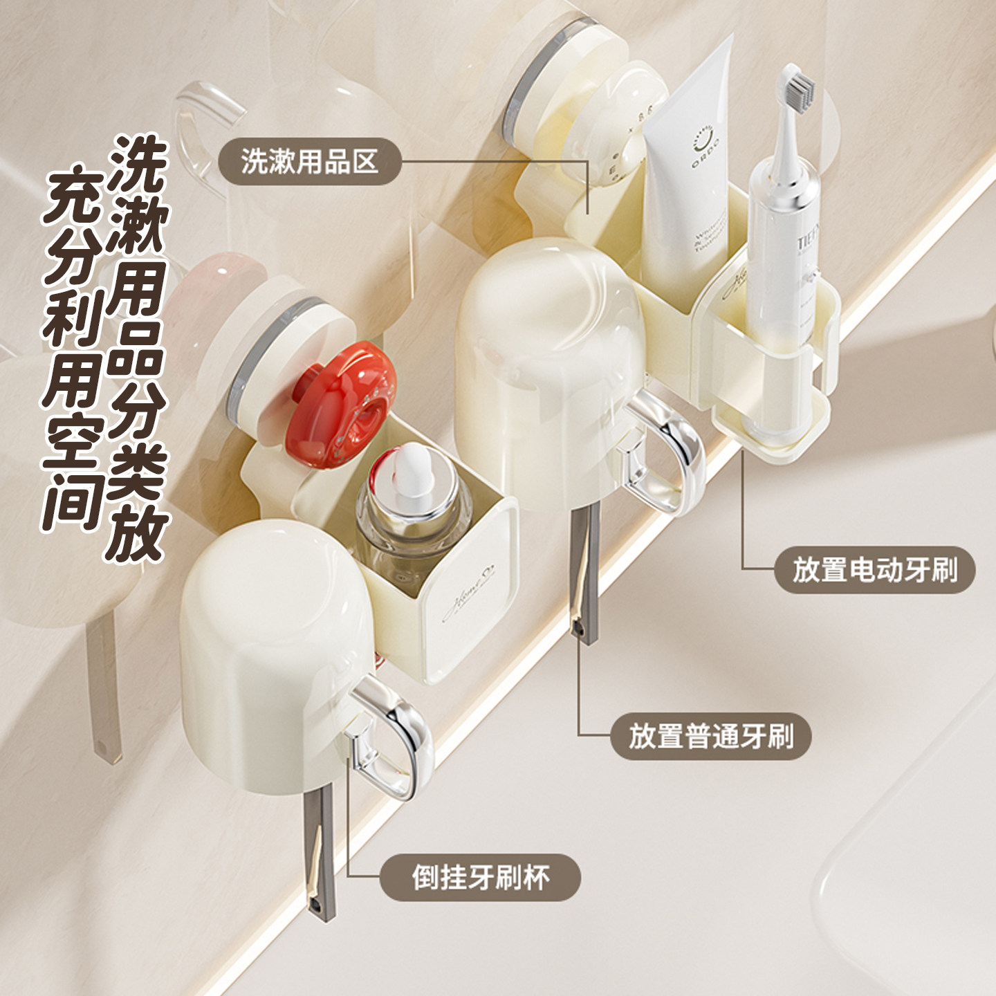 倒挂吸盘漱口杯牙膏洗漱杯架刷牙杯子 朋菲电动牙刷架置物架壁挂式由