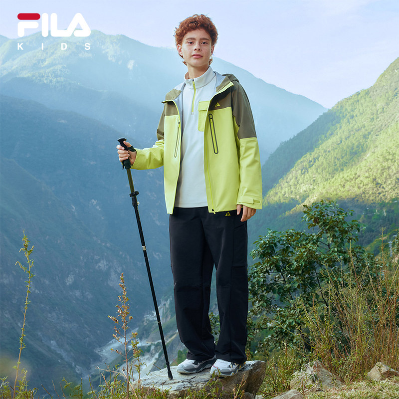 FILA 男大童梭织外套2026春季 新款 儿童连帽运动上衣 KIDS斐乐童装